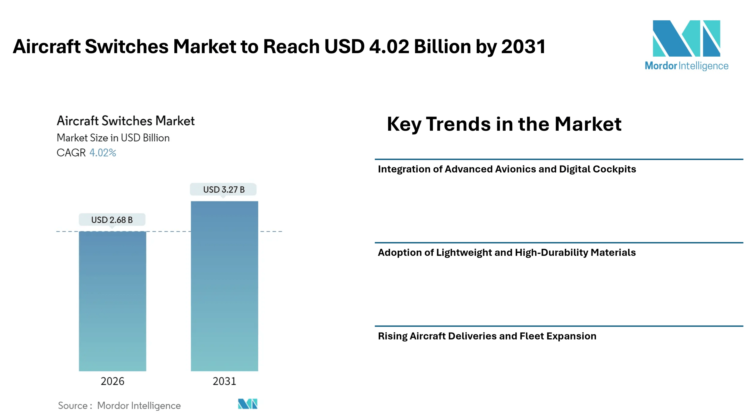Aircraft Switches Market to Reach USD 4.02 Billion by 2031, Supported by Advanced Avionics Integration and Rising Aircraft Production – Mordor Intelligence