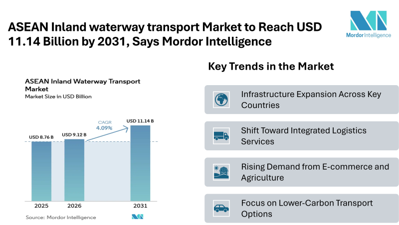 • ASEAN Inland waterway transport Market to Reach USD 11.14 Billion by 2031, Says Mordor Intelligence