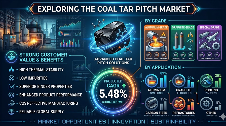 The global Coal Tar Pitch Market is projected to reach USD 7,851.29 million by 2035 at a CAGR of 5.48%, sustained by the aluminum industry’s non-negotiable anode binder requirements, the accelerating expansion of EAF-based green steel production, the growing specialty graphite demand from semiconductor and battery industries, and the emerging premium opportunity in pitch-based carbon fiber for aerospace and advanced composites. The market’s most consequential structural tension is between the long-term reduction of coal tar supply (as metallurgical coke production gradually declines in a decarbonizing steel industry) and the growing demand for premium pitch grades from the same clean energy industries that are driving steel’s decarbonization. This supply-demand tightening is already elevating pitch prices in premium grades and incentivizing investment in alternative pitch sources including petroleum-derived heavy residues and bio-based aromatic precursors. New growth opportunities through 2035 are crystallizing in emerging markets with high infrastructure and industrialization requirements, eco-friendly pitch processing technologies that reduce PAH emissions and improve environmental compliance, and advanced production technology investment that enables higher-purity premium grades for carbon fiber and specialty electrode applications. For producers, consumers, and investors navigating the complex intersection of traditional heavy industry and emerging clean energy applications, the coal tar pitch market represents one of industrial chemistry’s most intriguing strategic positions — a dark, ancient substance that the bright future of aluminum, graphite, and carbon fiber cannot yet do without.